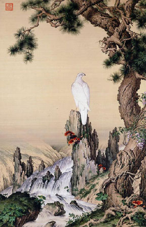Pine, Hawk, and Lingzhi Fungus Hanging scroll, color on silk, 242.3x157.1 cm