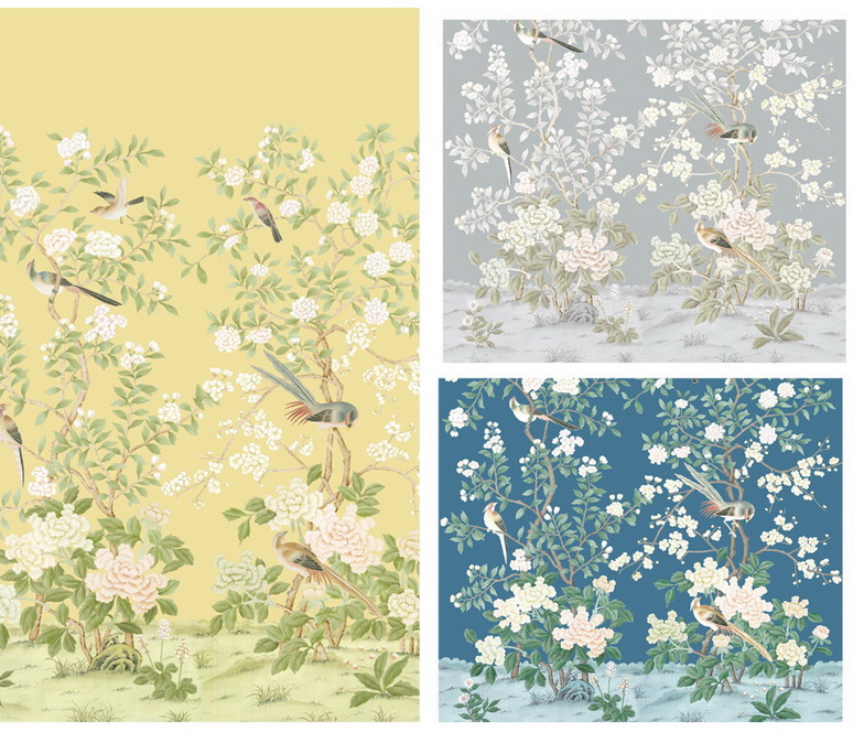 Hand Painted Wallpaper, Chinoiserie Wallpaper, Chinese Silk wallpaper, Hand Painted Embroidered Wallpaper, Hand Painted European Panoramic, Handmade Wallpaper.