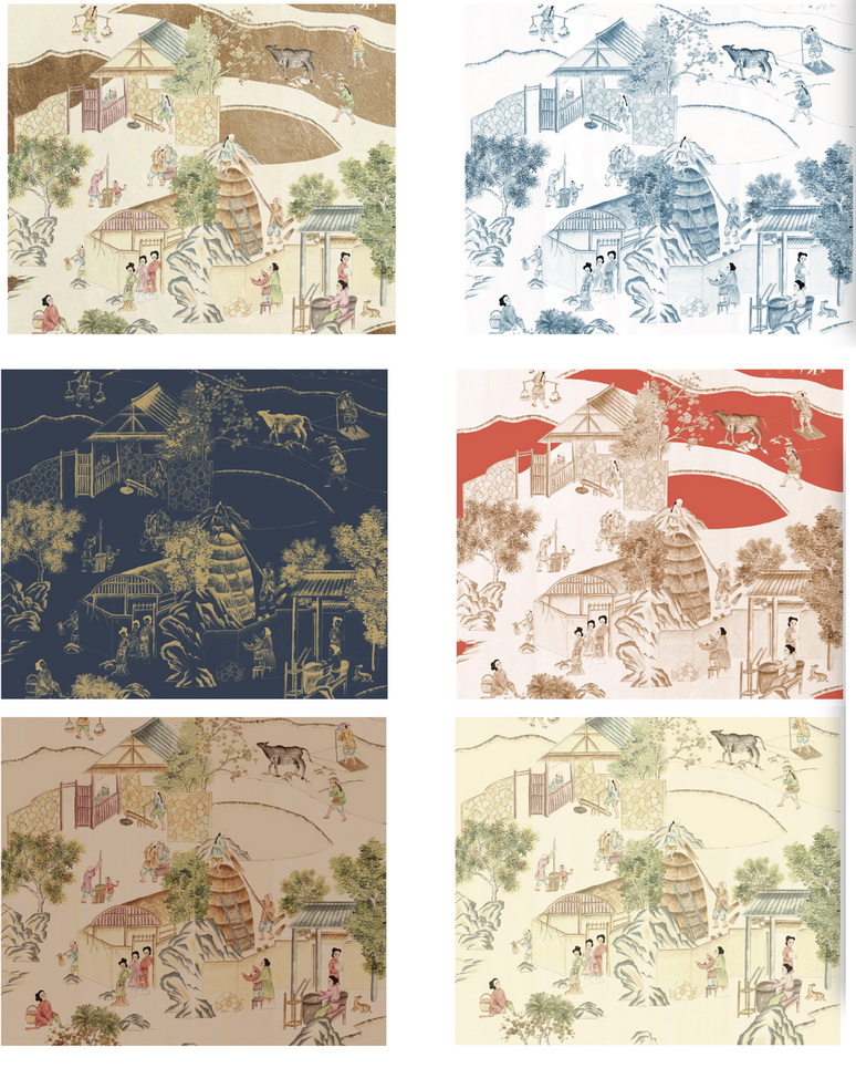 Hand Painted Wallpaper, Chinoiserie Wallpaper, Chinese Silk wallpaper, Hand Painted Embroidered Wallpaper, Hand Painted European Panoramic, Handmade Wallpaper.