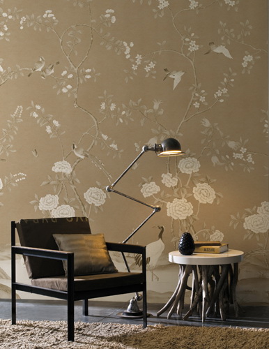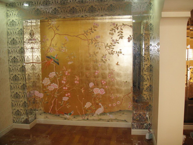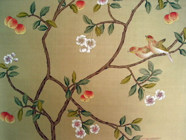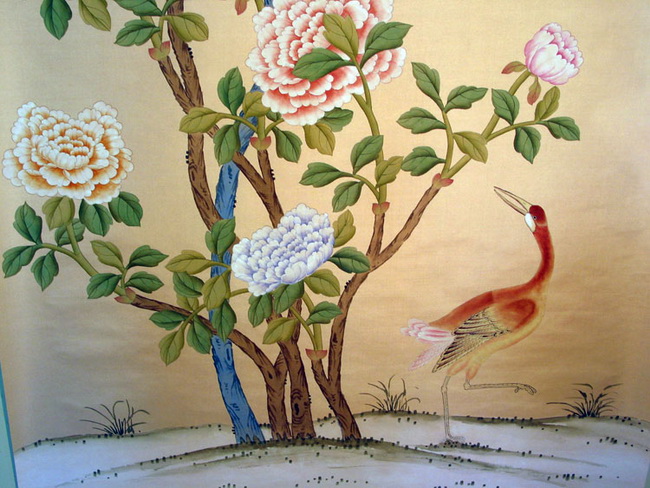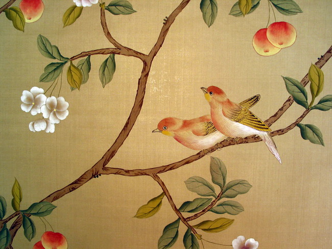 Our handmade wallpapers are devided into European landscape style and Chinoiserie style, can be painted on various background silk materials and metallic wallpaper with unique pattern color usage to fit your room styles.