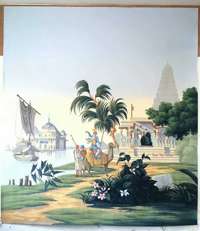 Our handmade wallpapers are devided into European landscape style and Chinoiserie style, can be painted on various background silk materials and metallic wallpaper with unique pattern color usage to fit your room styles.