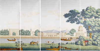 Our handmade wallpapers are devided into European landscape style and Chinoiserie style, can be painted on various background silk materials and metallic wallpaper with unique pattern color usage to fit your room styles.